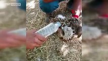 Adıyaman'da göç yolundaki bir kara çaylak kuşu, yorgun düştü. Av koruma kontrolünde olan ekip, şişeyle su içirdikleri kuşu doğaya bıraktı.