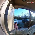 This man was on his way to work when he slipped on his porch's icy steps. To avoid falling, the man instinctively clutched onto the porch railing. However, the metal railing snapped off and he crashed to the fresh snow with the railing still in his grasp.