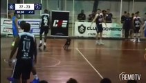 b'Cachorro quadra basquete'