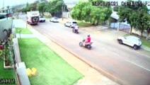 Câmera flagra colisão entre moto e caminhão no Claudete