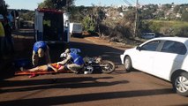Mulher é socorrida pelo Samu após acidente na marginal da BR-277 com a Rua do Cowboy