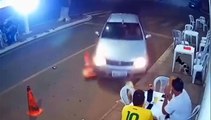 Las imágenes, que fueron registradas por las cámaras de seguridad del bar, muestran el momento exacto en el que la joven de 18 años llega non el automóvil y, lejos de estacionar, sube intencionalmente a la vereda y arrasa con la mesa donde se encontraba su pareja.