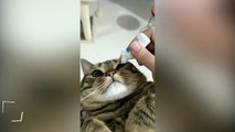 Gözüne damla damlatılan sevimli kedi kamerada