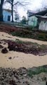 Karacabey ilçesinde sabah saatlerinden itibaren etkili olan sağanak ve fırtına nedeniyle, deniz suyu caddede yaklaşık 50 metre içeriye girdi. O anlar cep telefonu kamerasına yansıdı.
