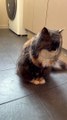 : "When you have a huge hole in the kitchen floor because your renovating and your fur baby decides to explore under the house for the first time and comes back out yelling and looking like she’s about to attend a funeral."