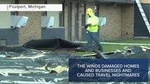 The storm hit southern Russia and the Crimean peninsula, bringing violent gusts of wind and giant waves breaking over motorways.