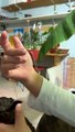 Strong Puppy Suckles On Finger