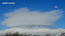 Ağrı Dağı'nın zirvesinde "şapka" şeklinde mercek bulut oluştu