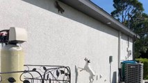 Excited Dog Slams Into Half Wall While Running Outside