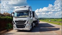 Carreta tomba na curva do Contorno Oeste, em Cascavel