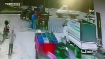 Kamyonetten dökülen şeftalileri toplamak için seferber oldular