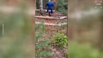 Hilarious Moment Man Falls off a Bench as He Is Chased by a Deer