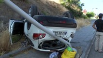 Isparta’da kontrolden çıkan otomobil elektrik panosuna çarparak ters döndü. Kazada sürücü hafif şekilde yaralandı.