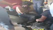 VIDEO: Rescatan a presunto ladrón atrapado en dos muros