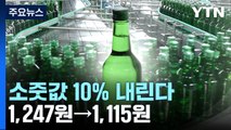 이에 따라 내년 1월 1일부터 공장출고가격이 천247원인 소주는 1,115원으로 10.6% 인하됩니다.
