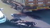 Çarptığı motosikletteki kadının yaralandığını gören kadın şoku üzerinden atamadı