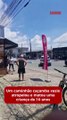 Criança pega 'rabeira' em caminhão, cai e quase é atropelada; vídeo