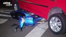 Carro colide e arrasta moto, deixando homem e mulher gravemente feridos no Santo Onofre