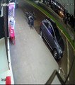 Motorista sobe em calçada, furta espeto de churrasco e foge