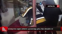 Antalya'da, iş yerinde hareketsiz yatan Erol M., kendisini uyandıran sağlık ekibine, "Ben ölmedim mi" dedi. Sağlıkçılar, alkollü olduğu tespit edilen Erol M.' ye alkol almaması tavsiyesinde bulundu.