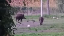 Incredibile a Roma: tre cinghiali trovano una palla e... giocano a calcio!