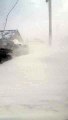 Snow blows off a truck's roof...