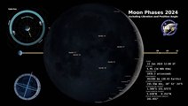 Watch the moon phases and libration for 2024, as seen from Earth's Northern Hemisphere, in this time-lapsed animation that is set at hourly intervals.