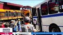 Autobús intenta ganarle el paso a tren