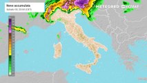 Mappa relativa agli accumuli di neve previsti nei prossimi giorni