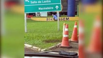 Motorista enfrenta problema durante congestionamento na PR-180 e desce do veículo para defecar