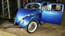 Fusca fica com a frente destruída após bater em muro