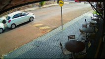 Câmera mostra que motociclista escapou por pouco de acidente entre Citroen C3 e Onix no Centro