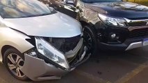 Onix e Versa se envolvem em colisão na Avenida Brasil, no Centro de Cascavel