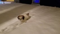 Puppy gets his first taste of snow