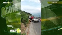 VIDEO | Conductor perdió el control de su camión y se volcó cayendo al vacío en una vía de Antioquia