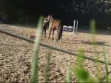 y a quelques semaines , je lui ai acheté une pierre et de sel . Et elle se régale^^ . Tous les jours, elle est un peu plus usée (*). Je lui ai aussi achetée des nouvelles bandes de travail (baa oui elle est gâtée la Qwenta ^^), j'adore cette couleur, je trouve qu'elles lui vont bien :) (*). Elle réclame beaucoup de câlins ces temps-ci , chose qu'elle ne faisait pas avant et je vous dit pas comme ça me fait plaisir ♥ Travail à pied : la révérence ^^ . Pour le stick to me au galop, c'est vraiment super ! Et le cercle, ça devient vraiment parfait ! Elle répond nickel à la voix pour toutes les allures :) ! Travail monté : on approfondit les départs au galop depuis l'arrêt et le pas ! C'est de mieux en mieux :). Puis on travaille aussi sur le reculer et l'arrêt avec seulement pression aux jambes et ça devient vraiment super !