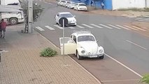 Por outro ângulo: Veja Kombi furando preferencial e atingindo motociclista no Centro de Cascavel