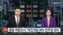 여론조사기관 리얼미터의 지난주 조사에서 더불어민주당 지지도는 전주보다 0.3%포인트 오른 43.1%, 국민의힘 지지도는 1.7%포인트 내린 35.4%를 기록했습니다.