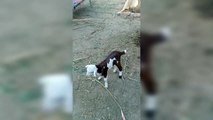 Beautiful baby goat playing
