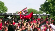 Alors que le Bayer Leverkusen a besoin d'une victoire contre le Werder Brême pour être champion pour la première fois de son histoire, les supporters du club ont massivement investi les rues de la ville avant la rencontre.