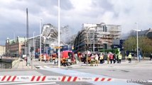 Scoppia incendio nella sede della vecchia borsa di Copenhagen. La Boersen è uno degli edifici più antichi della capitale danese. Le fiamme hanno fatto crollare l'iconica Guglia