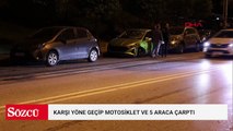 İstanbul Bahçelievler Basın Ekspres yolunda emniyet şeridindeki araca çarpan iki motosikletten birisi alev aldı. Kazada 2 kişi yaralanırken motosikletin alev alev yanması cep telefonu kamerasına yansıdı.