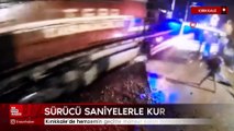 Ölümden saniyelerle kurtuldu! Hemzemin geçitte mahsur kalan dolmuşa tren çarptı