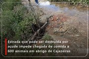 Estrada que pode ser destruída por açude impede chegada de comida a 600 animais em abrigo de Cajazeiras
