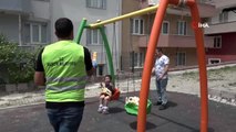 Dışarı çıkan çocuklara maskotlar eşliğinde dondurma sürprizi
