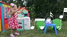 Diana pretend play with toy Kitchen and preparing breakfast