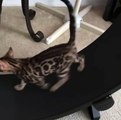 Suddenly, at the end of the treadmill, the cat leapt into action.