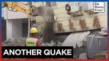 Workers in the eastern Taiwan city of Hualien clear debris and try to stabilise buildings left leaning by a series of powerful tremors that struck overnight on April 22. The government says they were aftershocks from the deadly 7.4 magnitude earthquake that hit the island more than two weeks ago, killing at least 17 people. So far, authorities have reported no casualties as a result of the latest quakes.