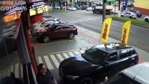 Câmera flagra carreta desgovernada atingindo veículos no Centro de Umuarama