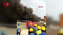 BAŞAKŞEHİR'DE İŞÇİLERİN KALDIĞI KONTEYNERLERDE YANGIN